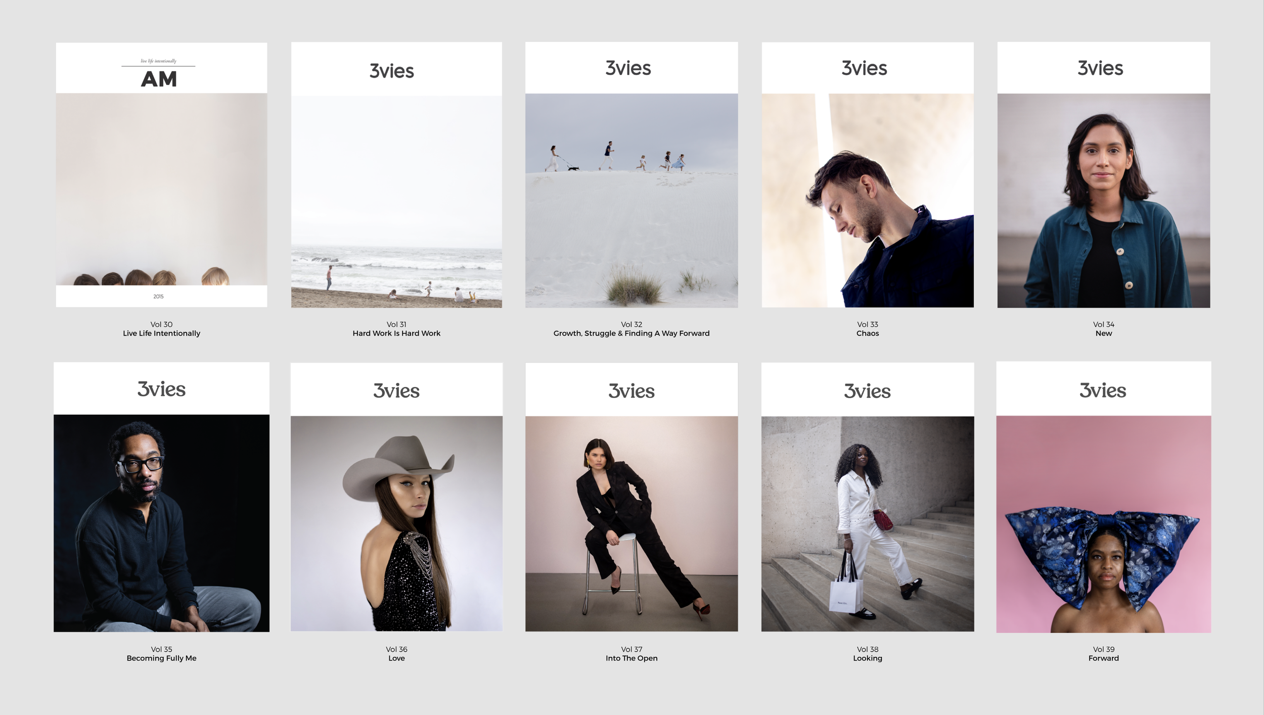 3vies magazine is a decade-long independent print project at the intersection of art, foresight, and intentional living. Each annual volume blends essays, photography, and design to explore how we imagine and shape the future of human experience. Born from a single article, “Becoming a Better Human,” the magazine has grown into a living archive of creativity and what it means to live a life filled with positive energy.