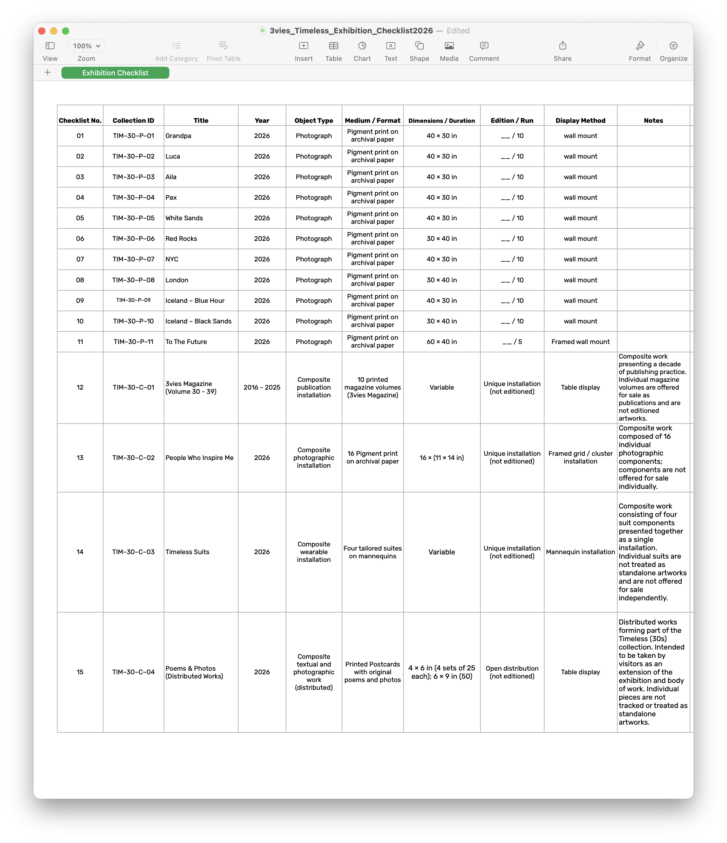 As I mentioned before, in my research for creating a traditional photo exhibit, I learned what artists, museums, and art collectors look for or create. There is so much more that goes into building, tracking, and properly updating an art collection. I wanted to share what I created.