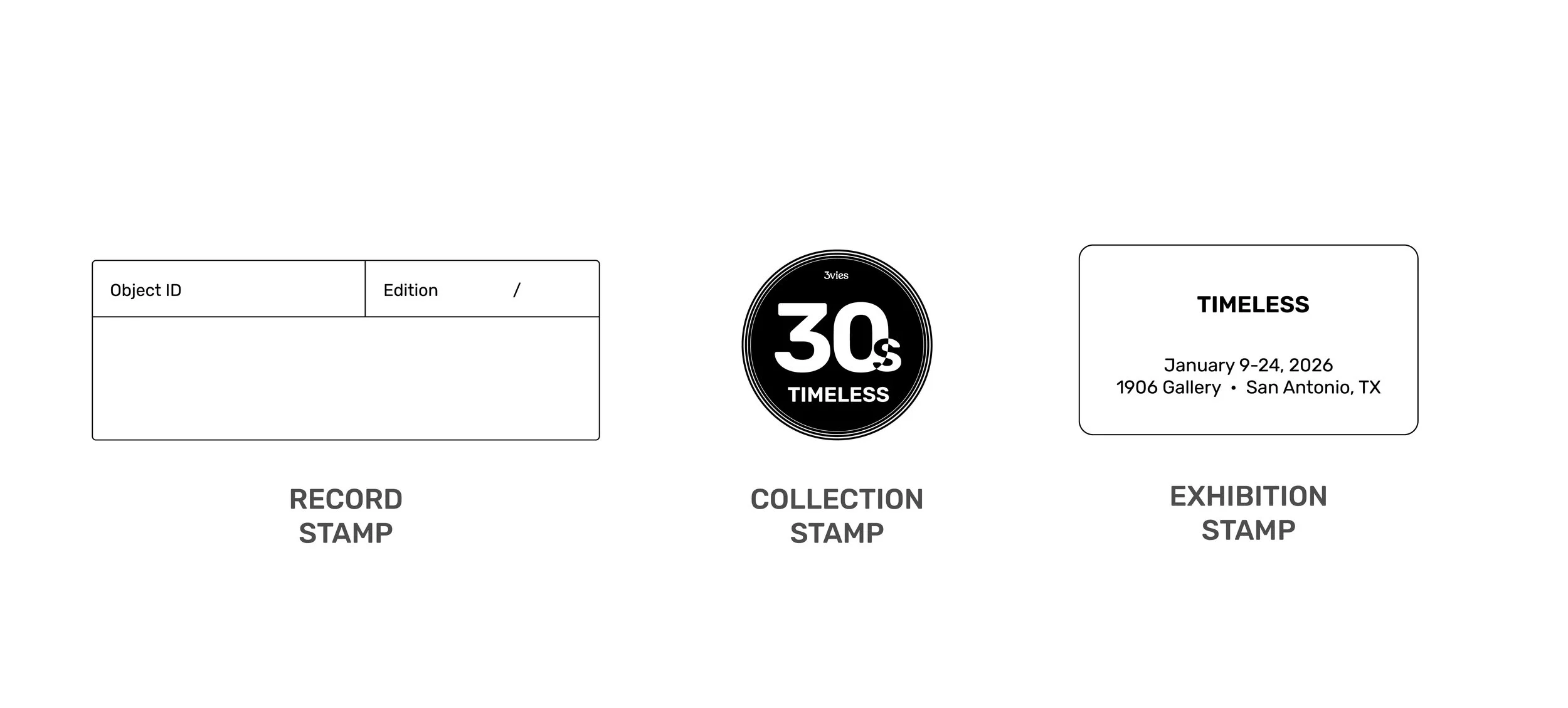 Here are the final 3 I landed on. The record stamp came up in my research, and I learned that keeping physical markings on the art is a fail-safe if they lose the COA with the details.